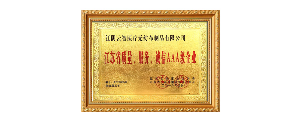 江蘇省質(zhì)量、服務(wù)、誠信AAA級(jí)企業(yè)